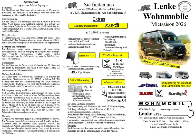 Unser Angebot der Mietfahrzeug im Jahr 2026 - der aktuelle Prospekt umfasst 2 Seiten im pdf.Format
