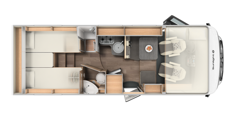4 Schlaf- und 4 Sitzplätze mit Gurt, ideal für 2 bis 4 Personen